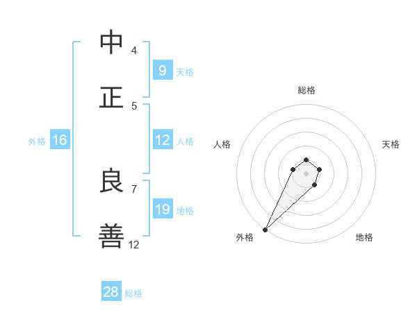 中正 良善さんの総格は28画の1点!