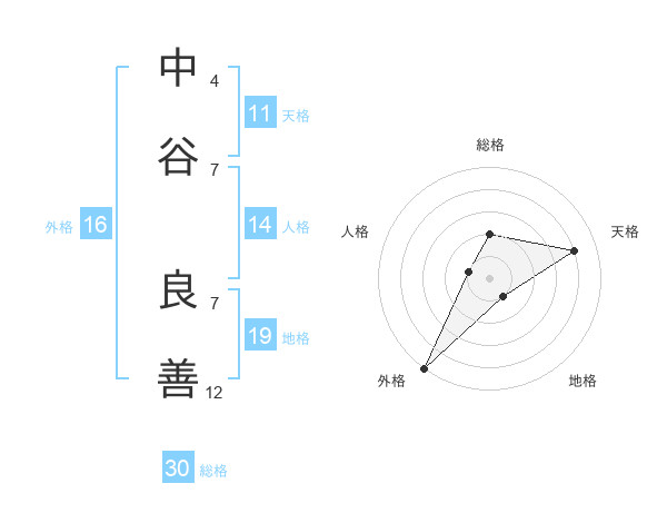中谷 良善さんの天格は11画の4点!