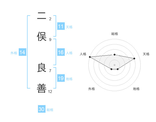 二俣 良善さんを姓名の画数から五運を鑑定