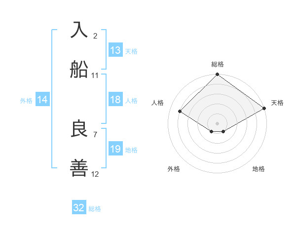 入船 良善さんの総格は32画の5点!