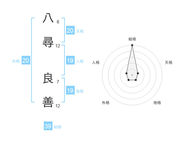 八尋 良善さんの天格は20画の1点!