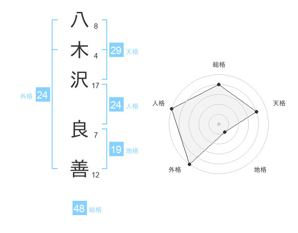 八木沢 良善さんの総格は48画の4点!