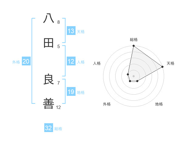 八田 良善さんの天格は13画の5点!