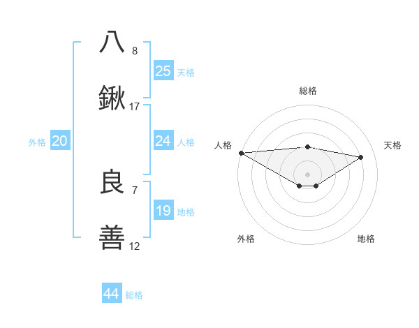 八鍬 良善さんの総格は44画の2点!