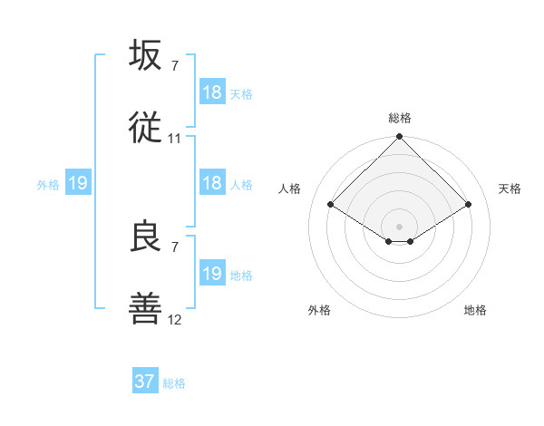 坂従 良善さんの総格は37画の5点!