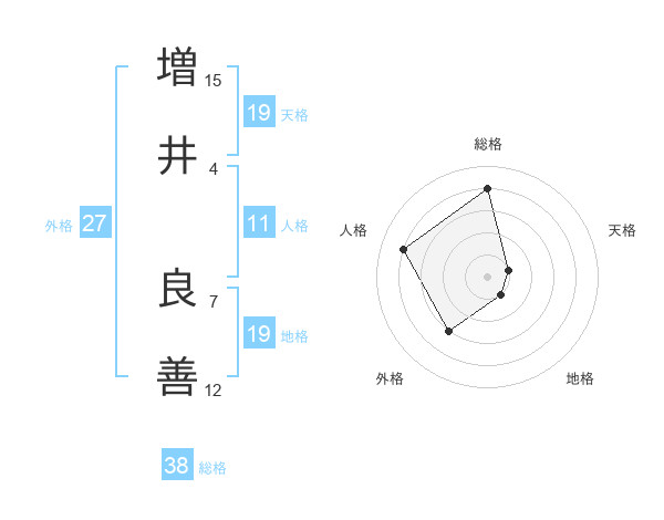 増井 良善さんの総格は38画の4点!