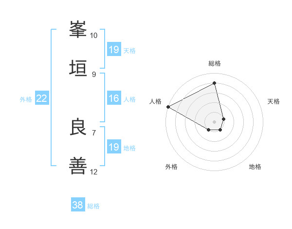 峯垣 良善さんの総格は38画の4点!