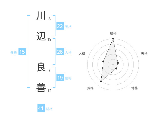 川辺 良善さんの総格は41画の5点!