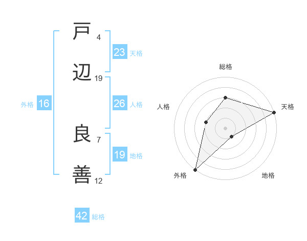 戸辺 良善さんの総格は42画の3点!
