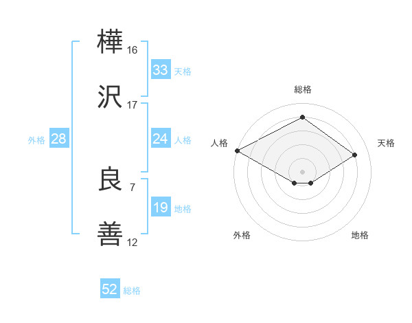 樺沢 良善さんの総格は52画の4点!