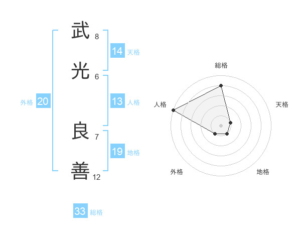 武光 良善さんの総格は33画の4点!