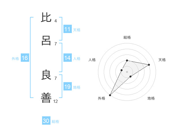 比呂 良善さんを姓名の画数から五運を鑑定