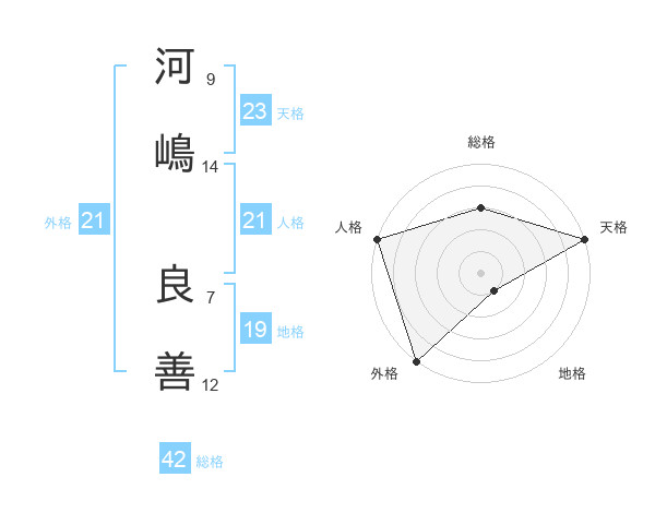 河嶋 良善さんの外格は21画の5点!