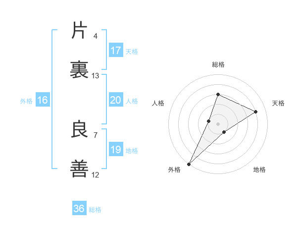 片裏 良善さんの天格は17画の4点!