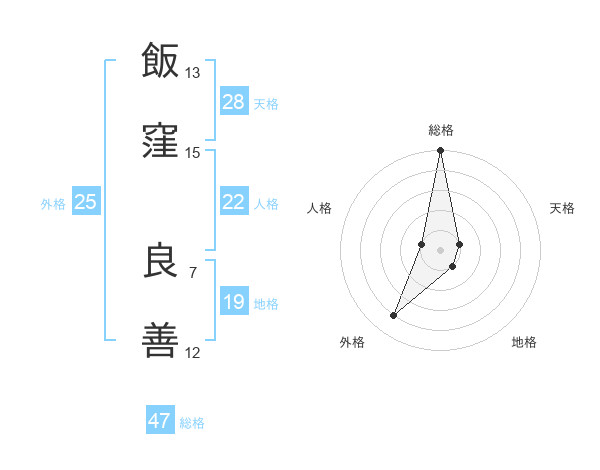 飯窪 良善さんの総格は47画の5点!