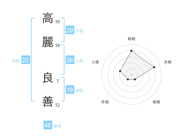 高麗 良善さんの天格は29画の4点!