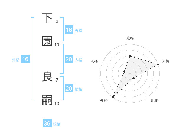 下園 良嗣さんの外格は16画の5点!