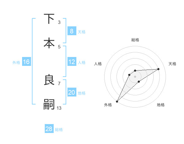 下本 良嗣さんを姓名の画数から五運を鑑定