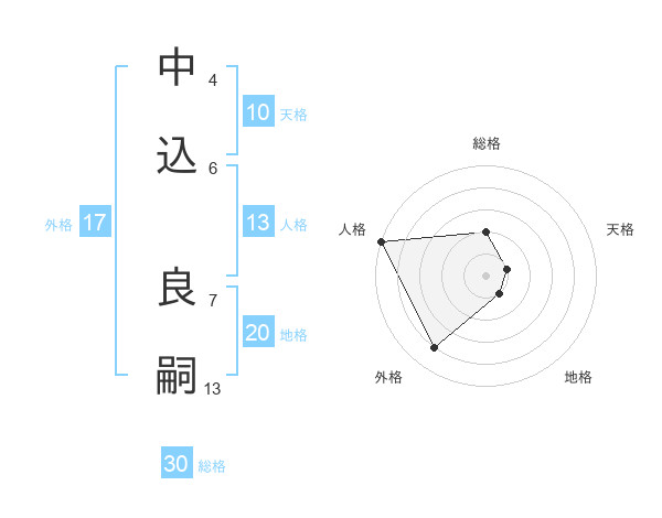 中込 良嗣さんを姓名の画数から五運を鑑定