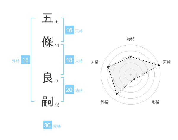 五條 良嗣さんの天格は16画の5点!