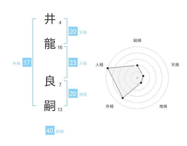 井龍 良嗣さんを姓名の画数から五運を鑑定