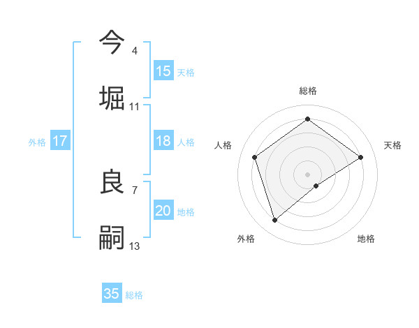 今堀 良嗣さんを姓名の画数から五運を鑑定