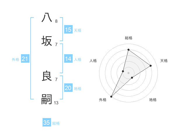 八坂 良嗣さんを姓名の画数から五運を鑑定