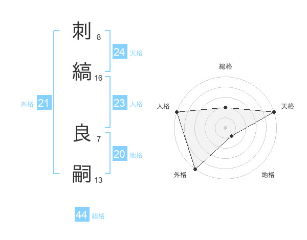 刺縞 良嗣さんの総格は44画の2点!