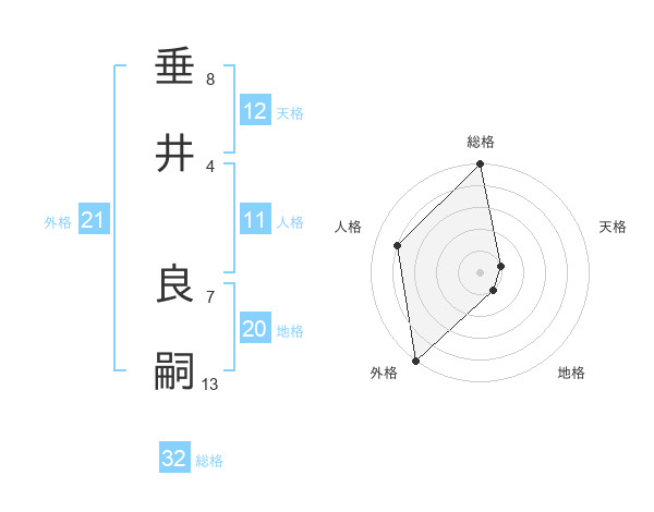 垂井 良嗣さんを姓名の画数から五運を鑑定