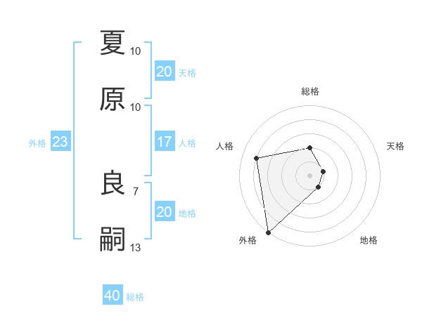 夏原 良嗣さんの天格は20画の1点!