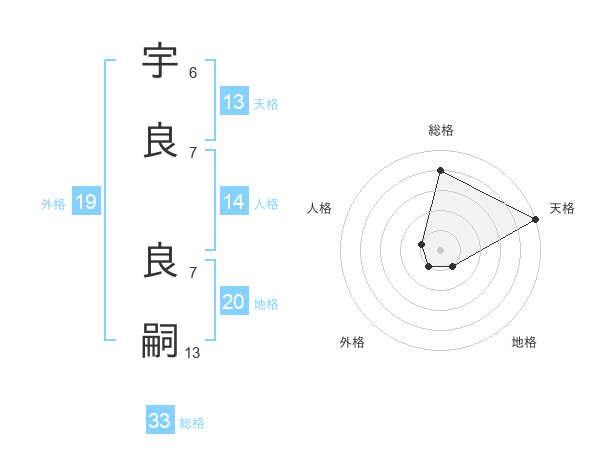宇良 良嗣さんを姓名の画数から五運を鑑定