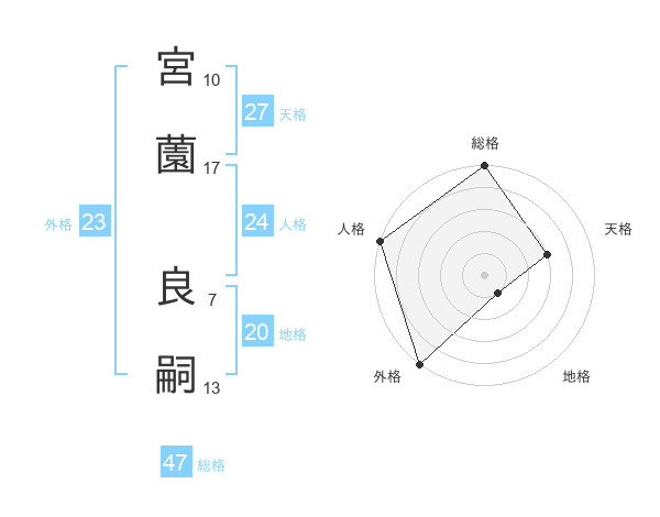 宮薗 良嗣さんの総格は47画の5点!