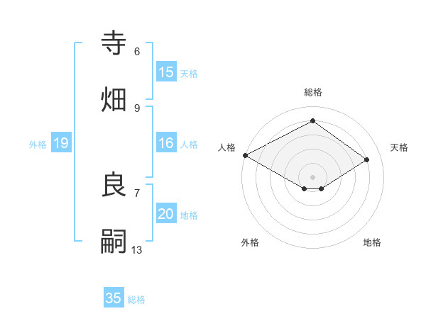 寺畑 良嗣さんの総格は35画の4点!