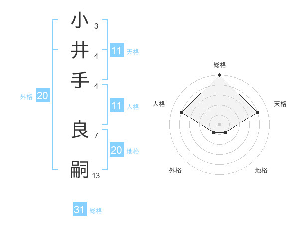 小井手 良嗣さんの総格は31画の5点!