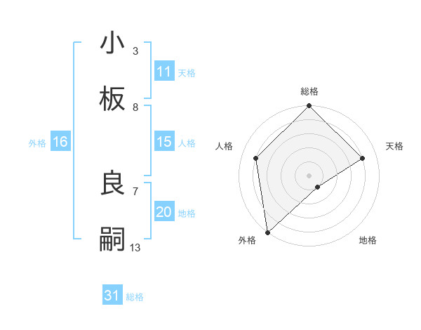 小板 良嗣さんの総格は31画の5点!