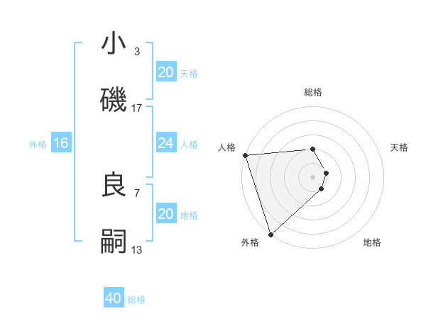 小磯 良嗣さんを姓名の画数から五運を鑑定