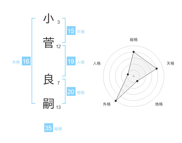 小菅 良嗣さんを姓名の画数から五運を鑑定