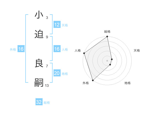 小迫 良嗣さんを姓名の画数から五運を鑑定