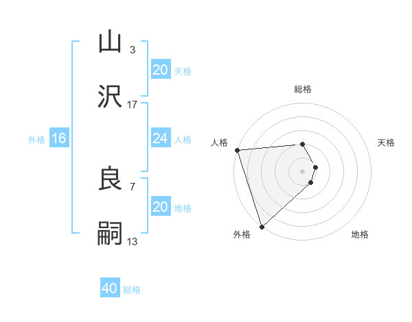 山沢 良嗣さんを姓名の画数から五運を鑑定