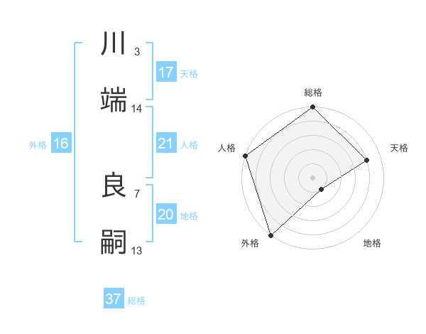 川端 良嗣さんを姓名の画数から五運を鑑定