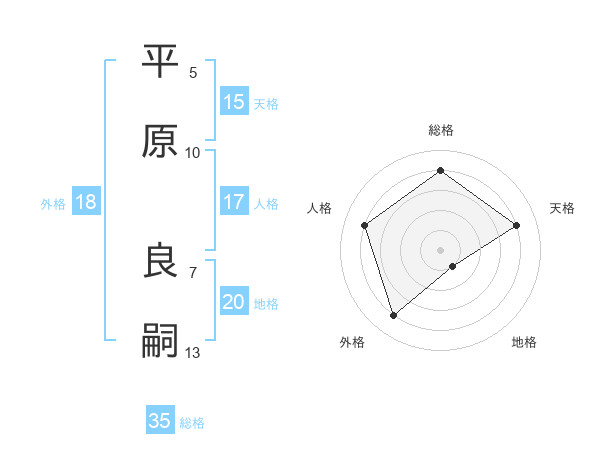 平原 良嗣さんの総格は35画の4点!