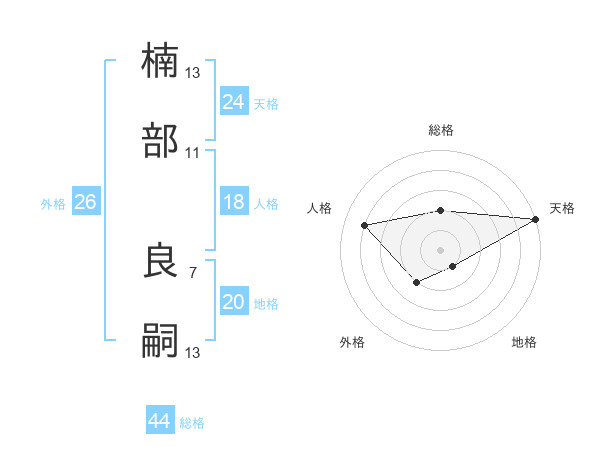 楠部 良嗣さんを姓名の画数から五運を鑑定