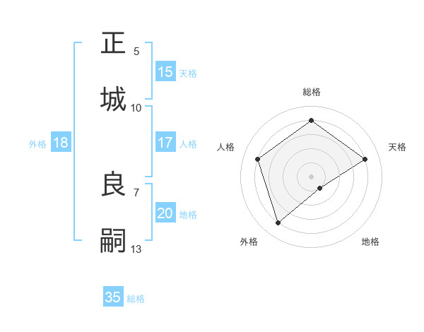正城 良嗣さんを姓名の画数から五運を鑑定