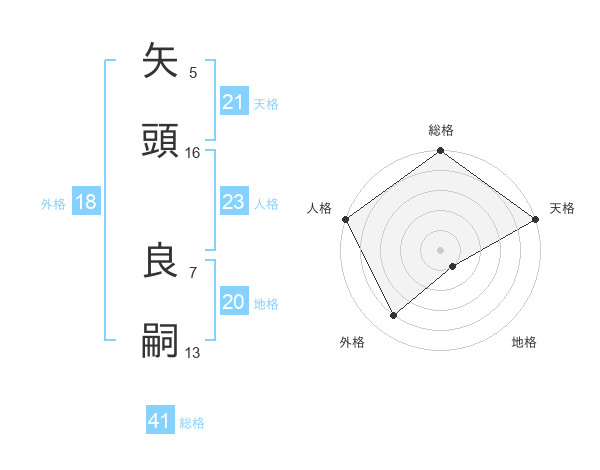 矢頭 良嗣さんの天格は21画の5点!