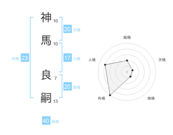 神馬 良嗣さんを姓名の画数から五運を鑑定