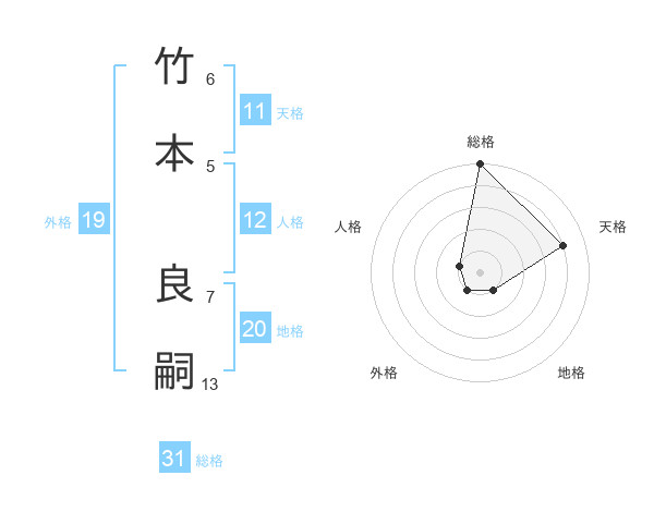 竹本 良嗣さんの総格は31画の5点!