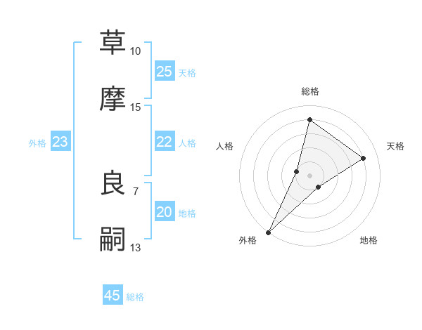 草摩 良嗣さんを姓名の画数から五運を鑑定