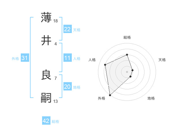 薄井 良嗣さんの総格は42画の3点!