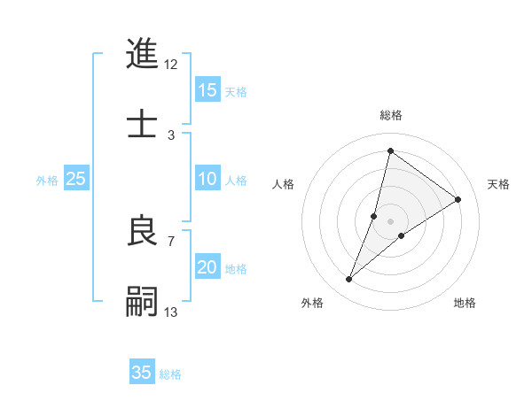 進士 良嗣さんを姓名の画数から五運を鑑定