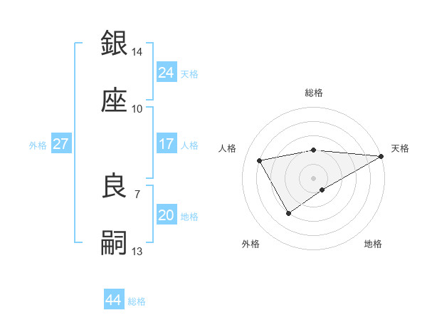 銀座 良嗣さんの天格は24画の5点!